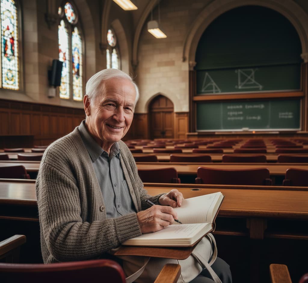 就這樣,這位90歲的老人在天文學入門課上與世界上最聰明的18歲年輕人一起坐在前排。他是一名模範學生;很早就到了,做筆記,甚至在不懂的地方提出問題。